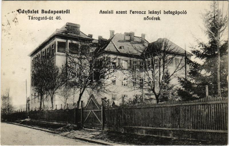 1928 Budapest II. Assisii szent Ferenc leányi betegápoló nővérek háza. Tárogató út 46.