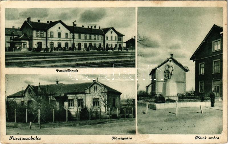 1937 Pusztaszabolcs, vasútállomás, Községháza, Hősök szobra (EK)