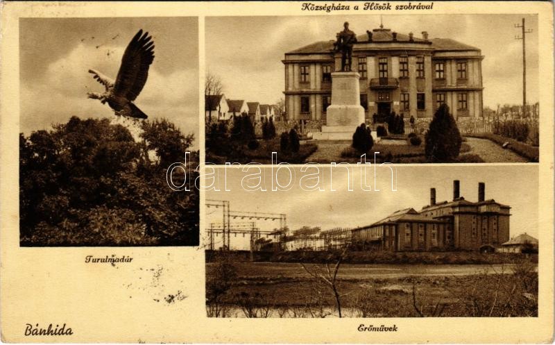 1939 Bánhida (Tatabánya), Turulmadár, Erőművek, Községháza a Hősök szo...