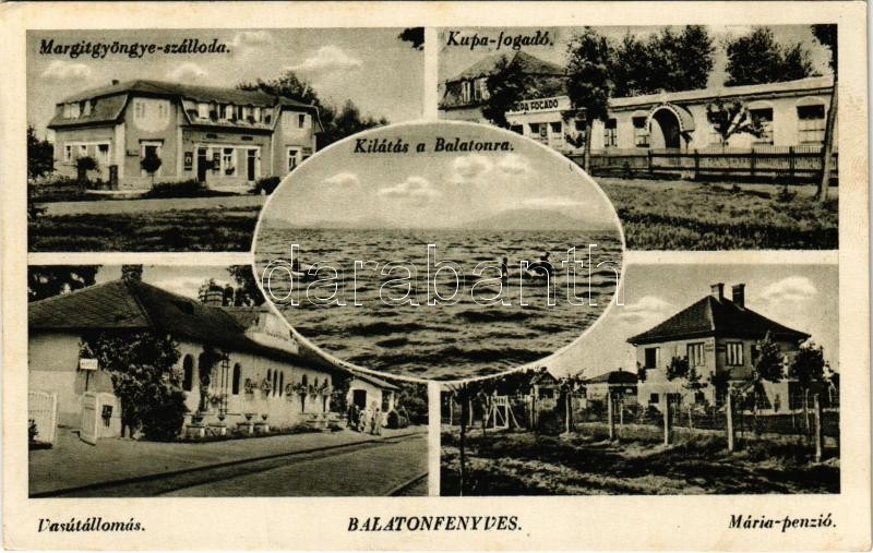 1943 Balatonfenyves, Margitgyöngye szálloda, Kupa fogadó, Mária penzió, vasútállomás