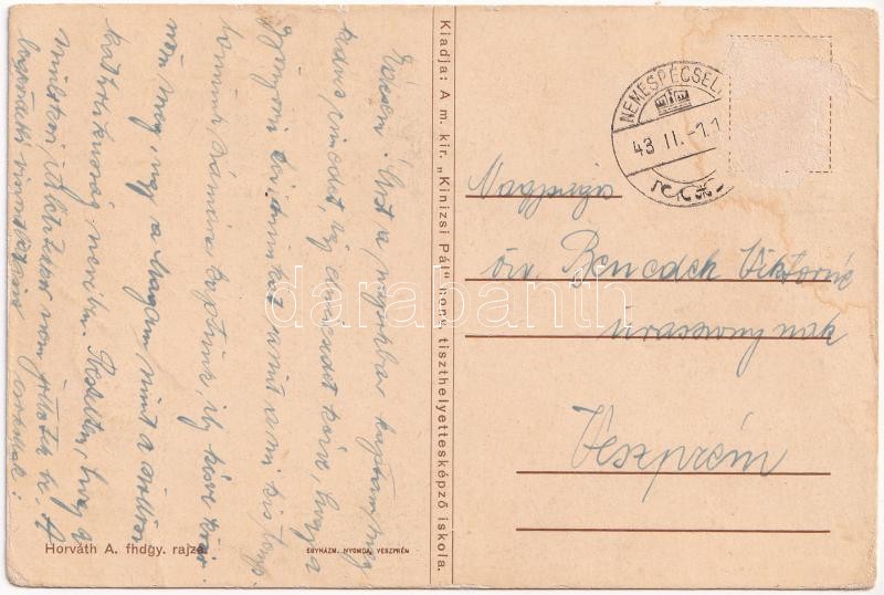 1943 Balatonszőlős, Kiadja a M. kir. Kinizsi Pál honvéd tiszthelyettesképző iskola, propaganda lap s: Horváth A. fhdgy. (EB)