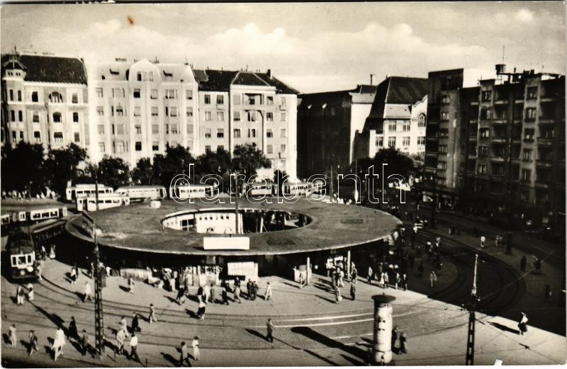 1959 Budapest XI. Móricz Zsigmond körtér, villamosok és HÉV megálló. K...