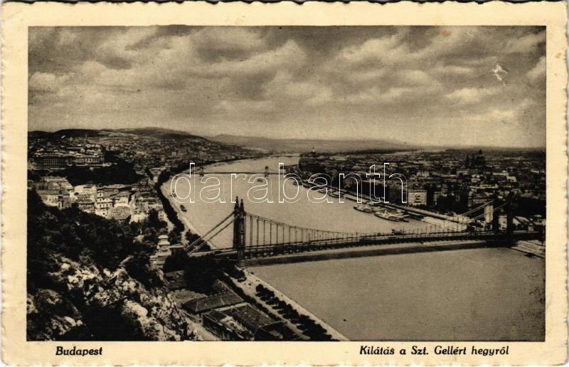 https://www.darabanth.com/en/408-Online-auction/408.0/Postcards/Hungary~1500005/Budapest-I-Kilatas-a-Szent-Gellert-hegyrol-Kiralyi-var-Erzsebet-hid-Taban-EK~II2530352