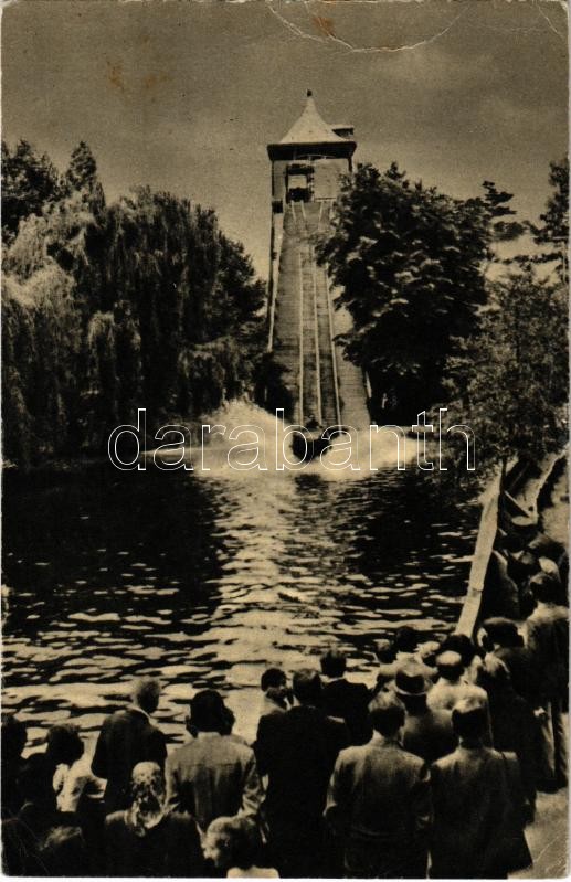 Budapest XIV. Városliget, Vidám Park, sikló. Képzőművészeti Alap Kiadóvállalat (gyűrődés / crease)
