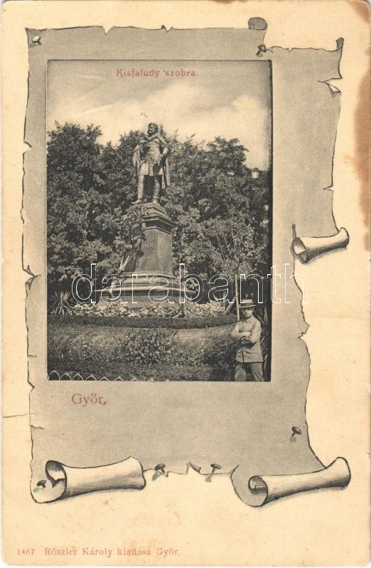 Győr, Kisfaludy szobra. Röszler Károly kiadása. Art Nouveau (szakadás ...