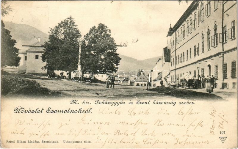 https://www.darabanth.com/en/408-Online-auction/408.0/Postcards/Slovakia~1500007/1901-Szomolnok-Schmolnitz-Smolnik-M-kir-dohanygyar-Szentharomsag-szobor-Fried-Miksa-kia~II2527625