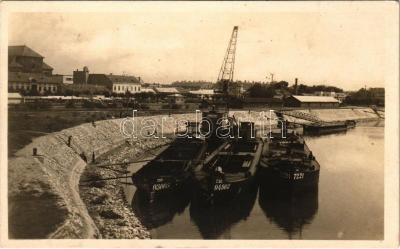 1940 Komárom, Komárno; kikötő, uszályok / port, barges