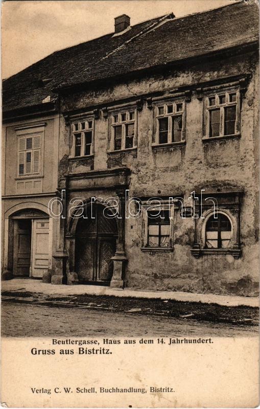 1908 Beszterce, Bistritz, Bistrita; Beutlergasse, Haus aus dem 14. Jah... https://www.darabanth.com/en/408-Online-auction/408.0/Postcards/Transylvania~1500006/1908-Beszterce-Bistritz-Bistrita-Beutlergasse-Haus-aus-dem-14-Jahrhundert-Erszeny-utca-haz~II2522641