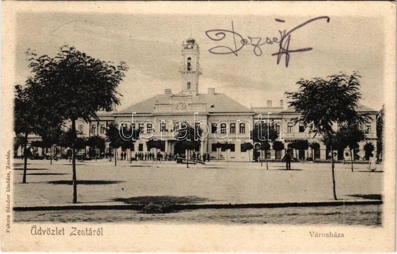 1903 Zenta, Senta; városháza, Horti János üzlete / town hall, shops