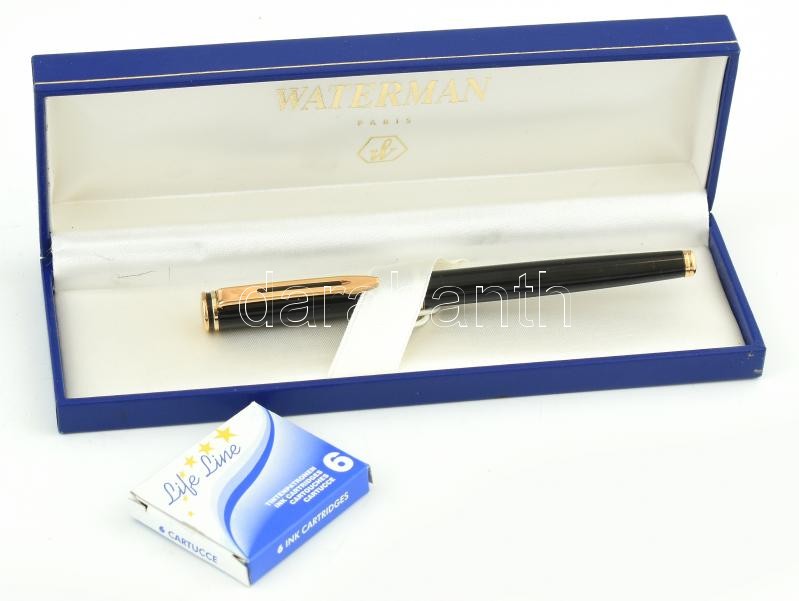 Waterman töltőtoll 3 db patronnal, eredeti dobozában, sérült, h: 14,5 ...