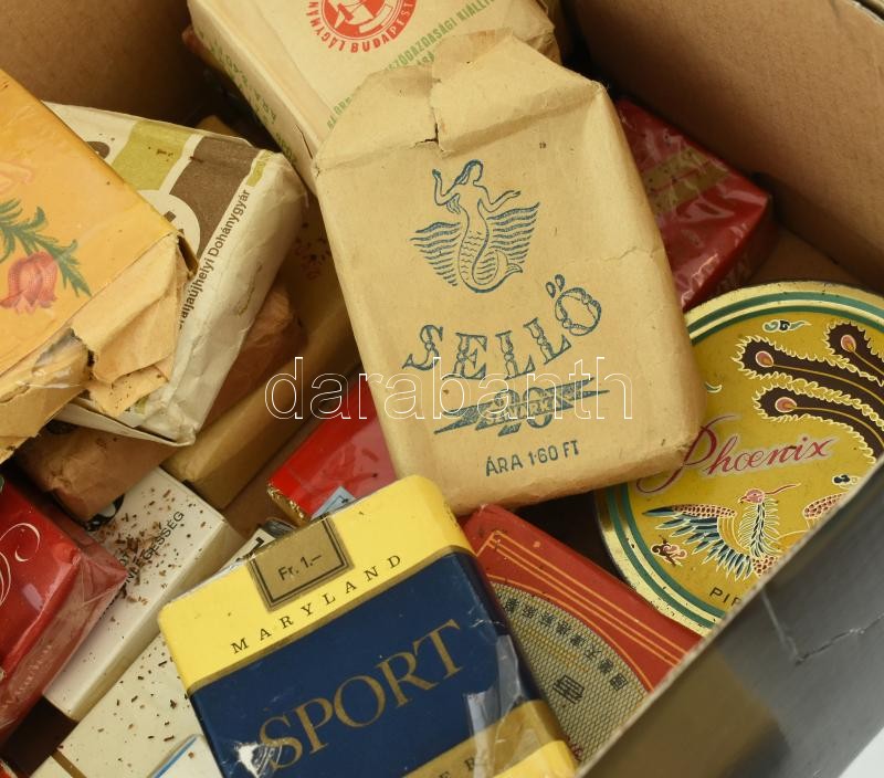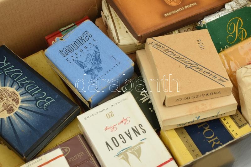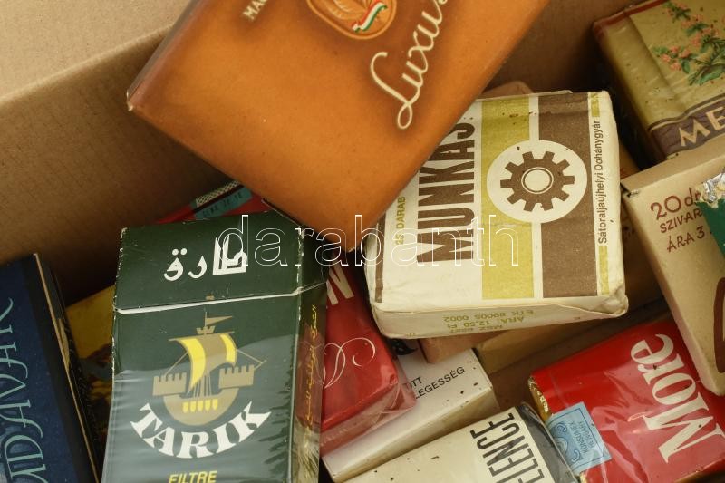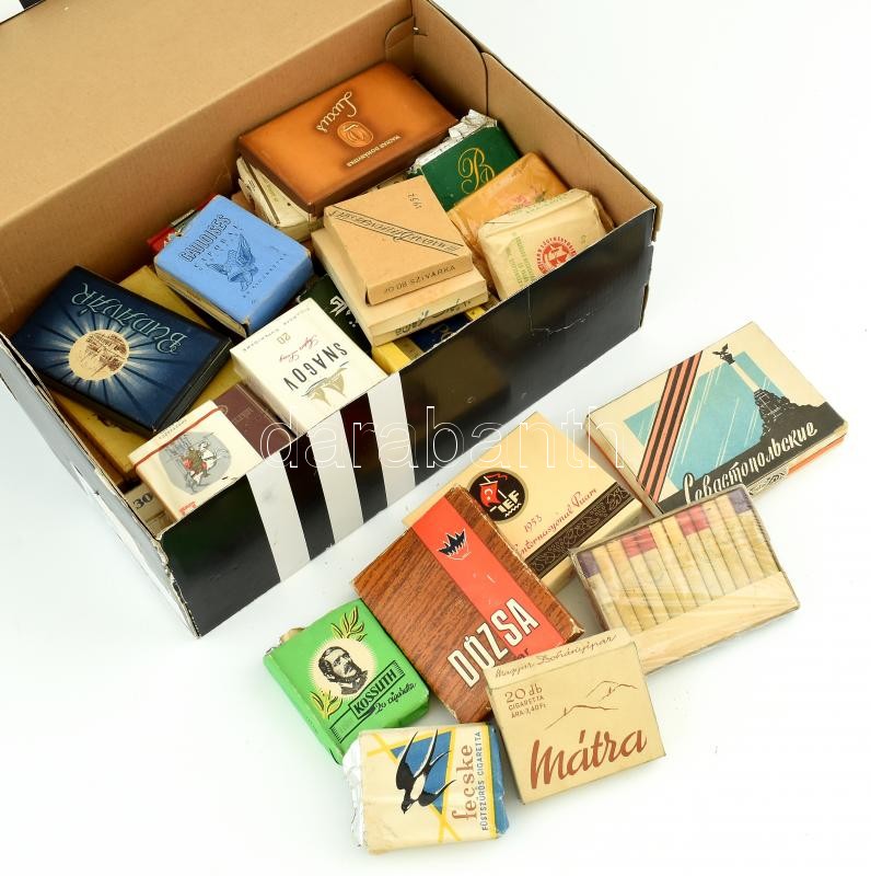 cca 37 db dohány, részben bontatlan, benne gyűjtői darabok, vegyes méretben. (Budavár, Fecske, Dózsa, Luxus, Mátra, vegyes orosz cigaretták, stb.)