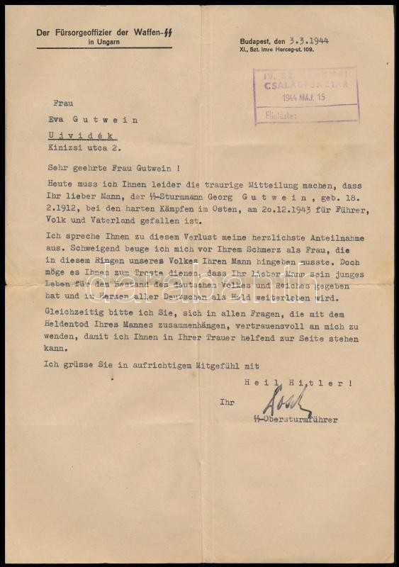 1944 Bp., a Waffen-SS budapesti tisztjének német nyelvű levele, egy el... https://www.darabanth.com/en/409-Online-auction/409.0/Art-and-other-collectibles/Military~500028/1944-Bp-a-Waffen-SS-budapesti-tisztjenek-nemet-nyelvu-levele-egy-elesett-ujvideki-Waffen-SS-~II2542873