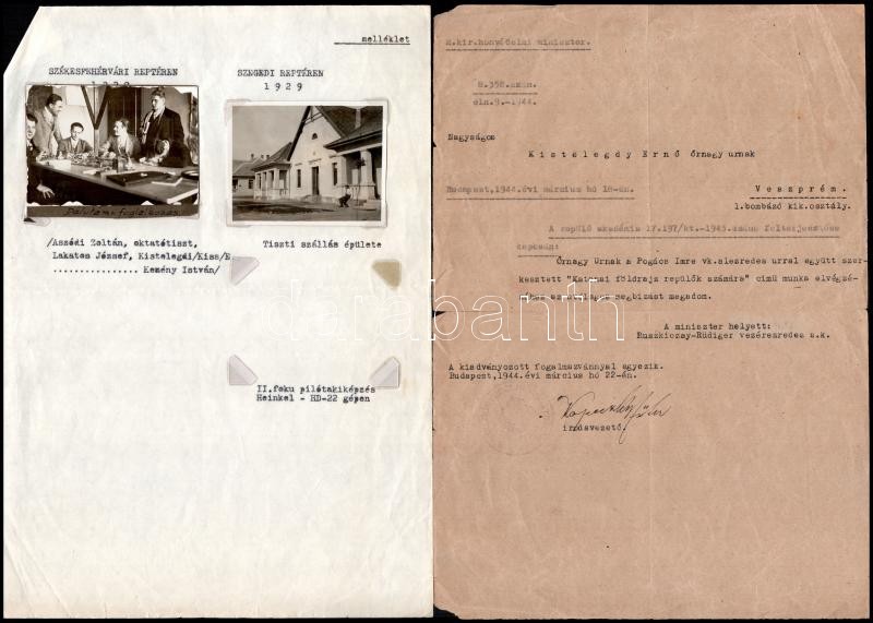 Kistelegdi Ernő repülős alezredes dokumentumai 4 db papír, 7 db fotó