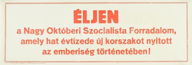 Description: cca 1969 2 db szocreál plakát: Éljen a Magyar Szocialista Munkáspárt társadalmunk vezető ereje. Éljen a nagy októberi Szocialista Forradalom amely hat évtizede új korszakot nyitott az emberiség történetében 69x25 cm