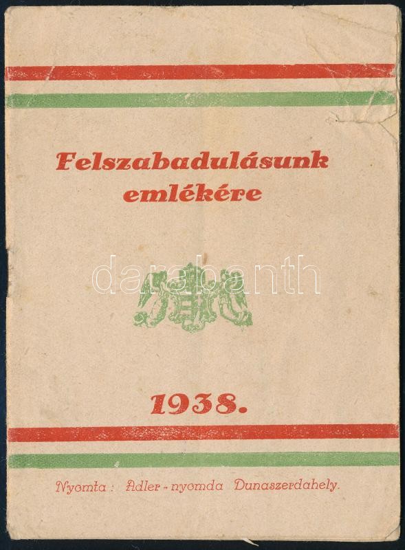1938 "Felszabadulásunk emlékére" irredenta füzet nótákkal, versekkel, borítón szakadás, nyomta: Adler-nyomda Dunaszerdahely