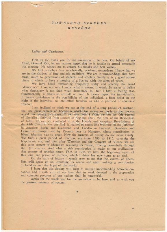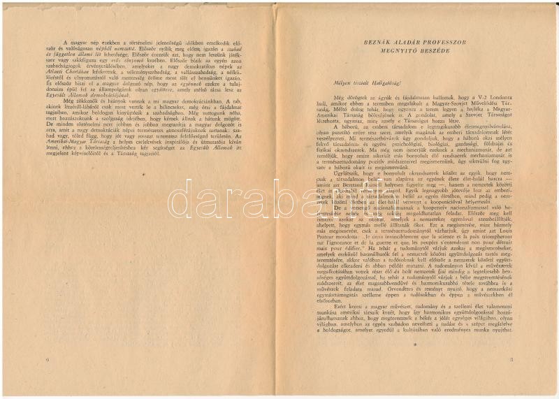 1945 A Magyar-Amerikai Társaság alakuló közgyűlésén elhangzott beszéde...