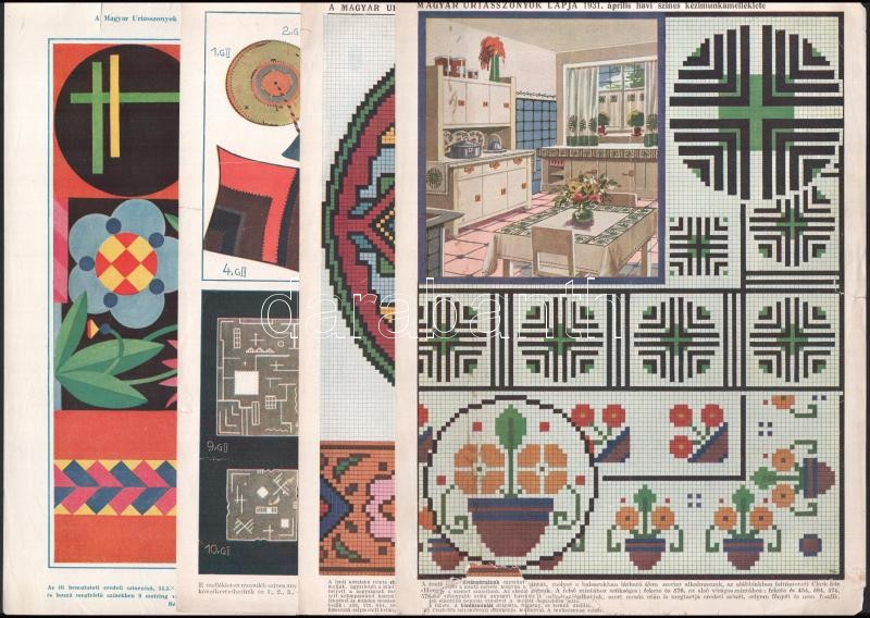 cca 1932-43 2 db magyar divat magazin (Párisi DIvat, Tündérujjak), kissé sérült + 10 db Magyar Úriasszonyok Lapja színes kézimunkamelléklet