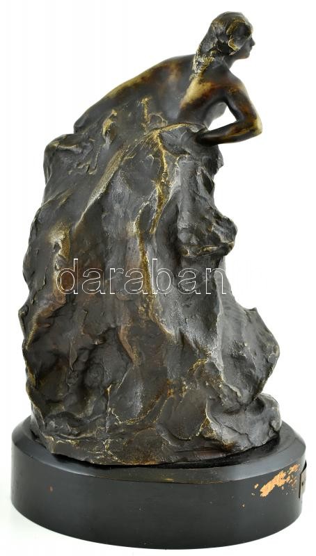 Betlen Gyula (1879 - 1963): Táncosnő. Öntött, patinázott bronz, fa tal...
