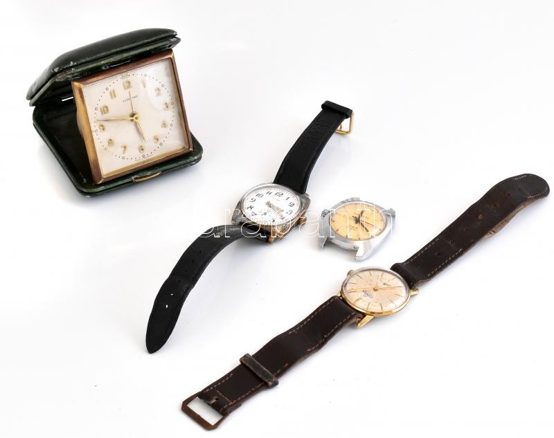 4 darabos régi óra tétel: Cornavin, Pobeda, Junghans, Ruhla karóra és ébresztő, Mind működő állapotban