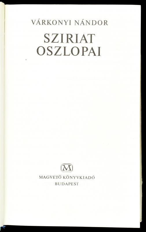 Várkonyi Nándor: Szíriát oszlopai. Bp., 1972., Magvető. Kiadói egészvá...