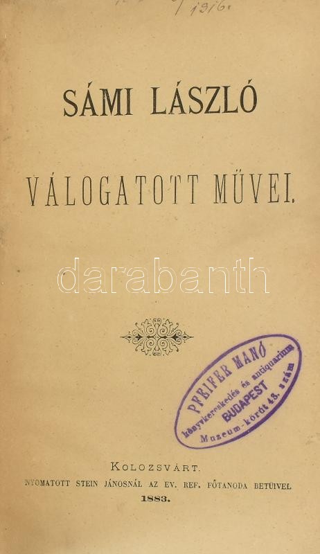 https://www.darabanth.com/en/409-Online-auction/409.0/Books/Books-Other-rarities~2000023/Sami-Laszlo-valogatott-muvei-Kolozsvar-1883-Stein-Janos-382-p-Atkotott-felvaszon-kC3~II2541337