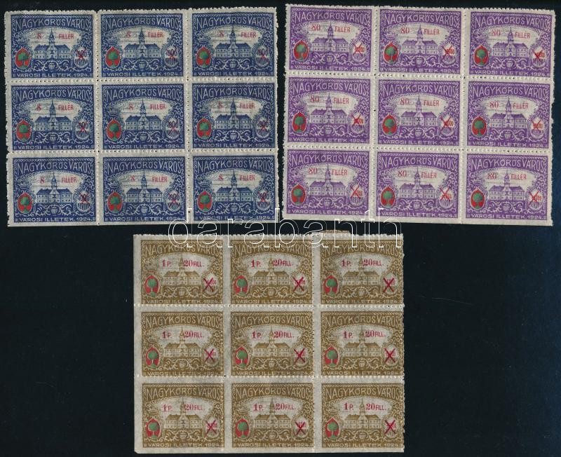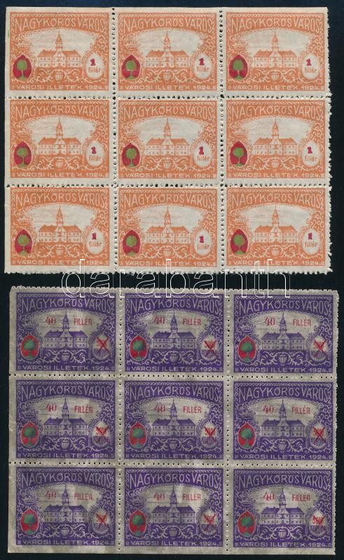 5 klf Nagykőrös városi okmánybélyeg kilencestömbökben