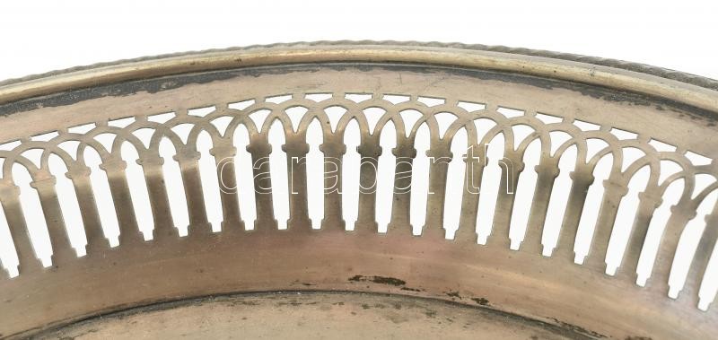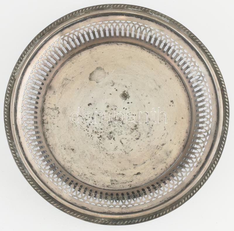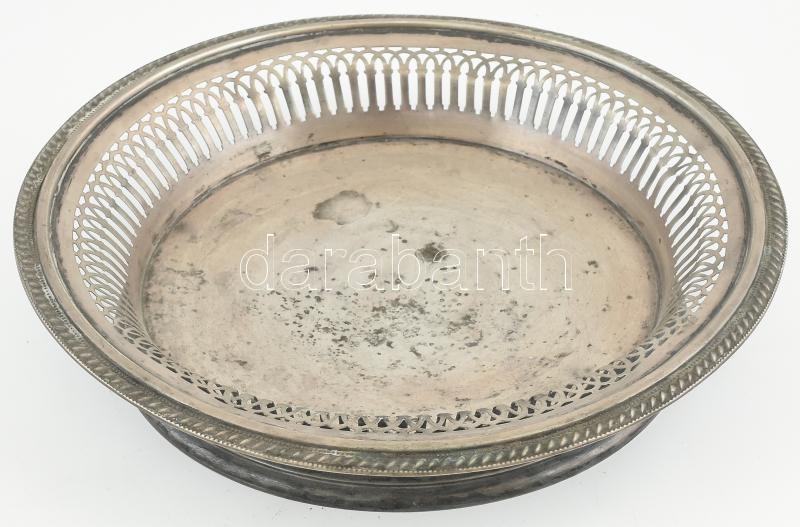 Ezüst (Ag) áttört tál. Jelzett. Kopott. Nettó: 346g, d: 23 cm