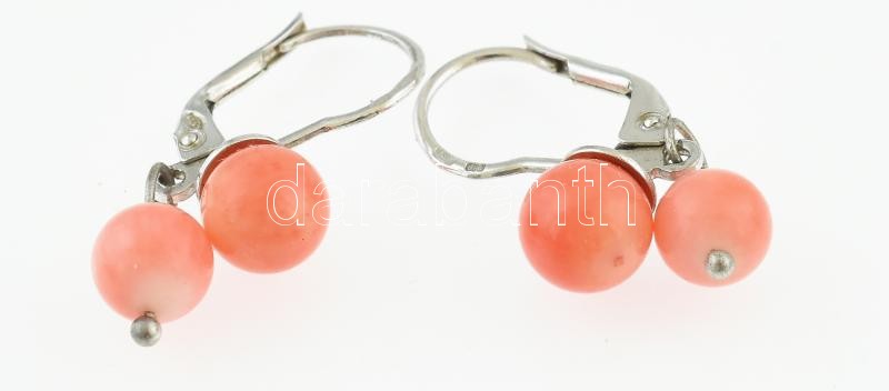 Ezüst (Ag) fülbevalópár korall gyönggyel, jelzett, br:3,6g, 2,5cm