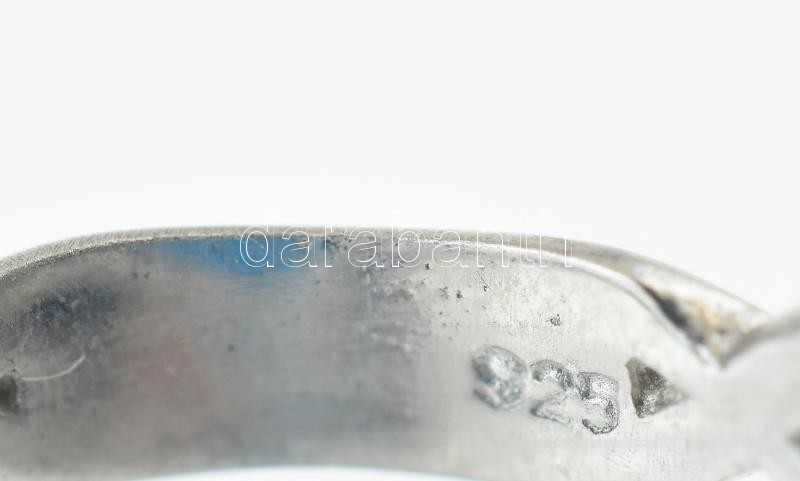 Ezüst (Ag) kék köves ékszerszett (gyűrű, fülbevaló, medál láncon), jel...