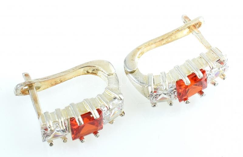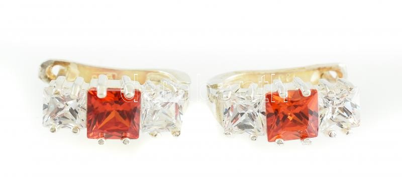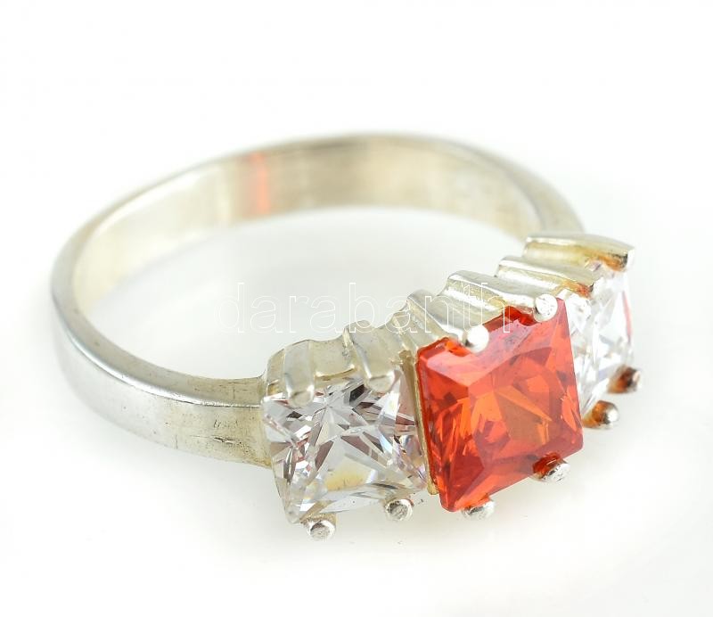 Ezüst(Ag) ékszerszett narancs- és fehér színű kövekkel, jelzett, gyűrű...