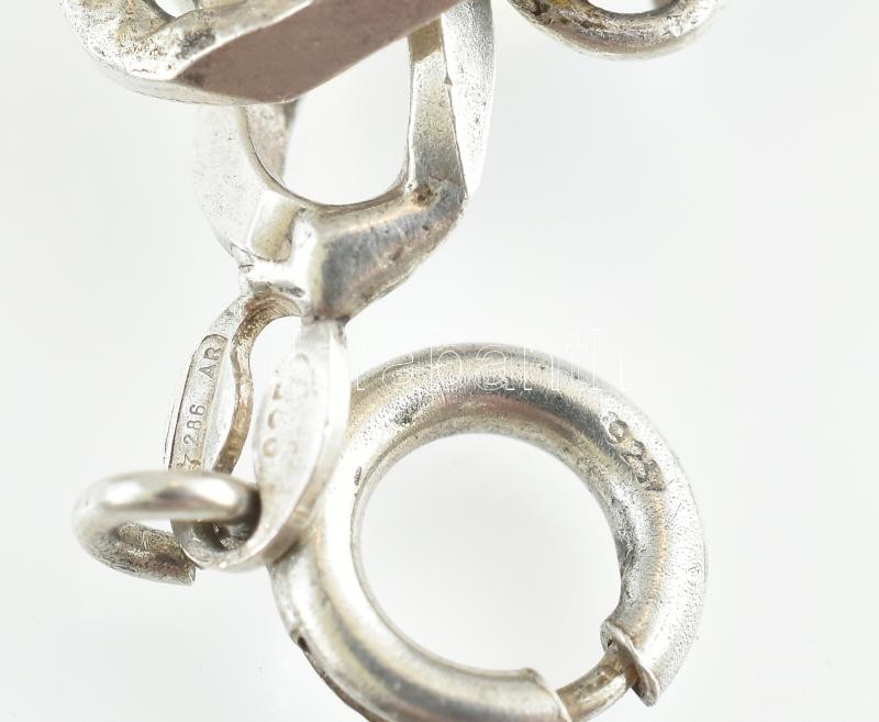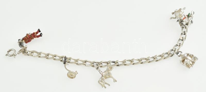 Ezüst(Ag) masszív pancer karkötő, 5 db függővel, apró javításokkal, jelzett, bruttó: 22,3 g