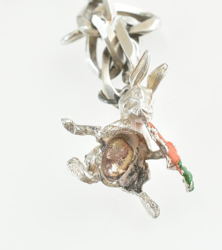 Ezüst(Ag) masszív pancer karkötő, 5 db függővel, apró javításokkal, je...