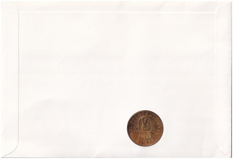 Description: Német Szövetségi Köztársaság 1989A "Brandenburgi kapu" Br emlékérem érmés borítékban, elsőnapi bélyegzős bélyegblokkal T:1,1- patina FRG 1989A "Brandeburg Gate" Br comemmorative medallion in coin envelope with first day of issue stamp C:UNC,AU patina