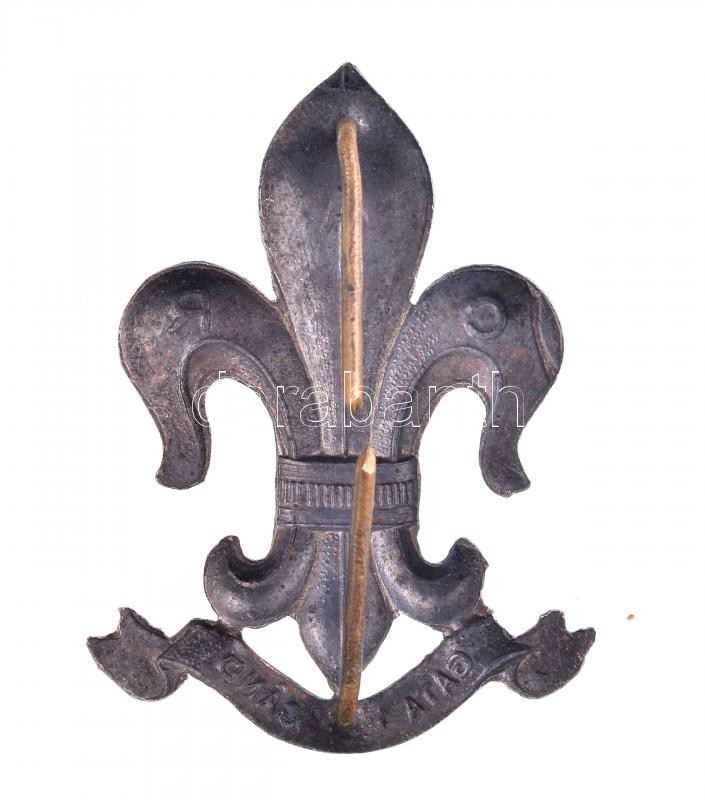 Description: Románia ~1930-1940. "C A R - Gata ori Cand" ezüstözött fém cserkész sapkajelvény (36x26mm) T:1-,2