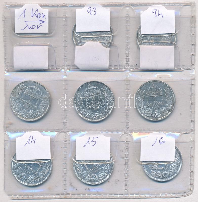 1893-1916. 1K Ag "Ferenc József" (8xklf) benne 1893, 1894, 1...