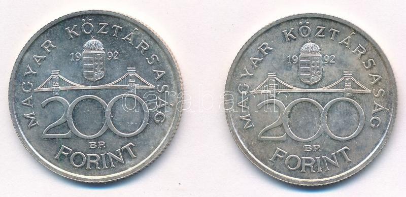 1992. 200Ft Ag "MNB" (2x) T:1-,2