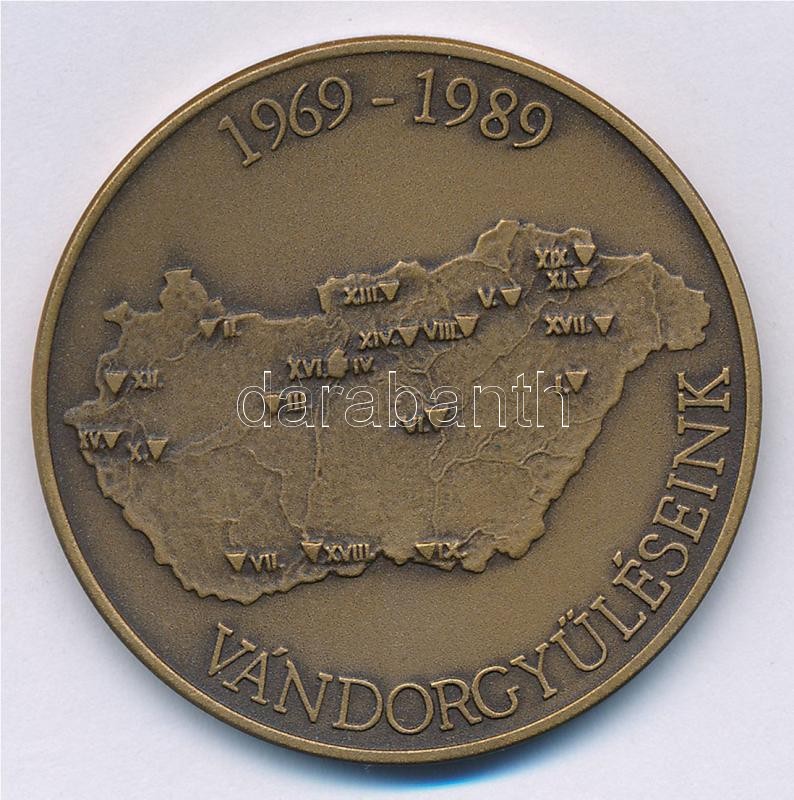 Bognár György (1944-) 1989. "20 éves a Magyar Éremgyűjtők Egyesülete / 1969-1989 Vándorgyűléseink" Br emlékérem (42,5mm) T:1,1-