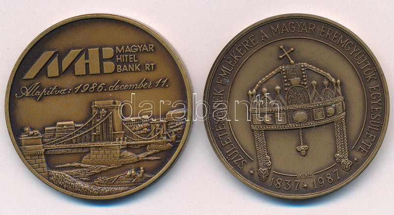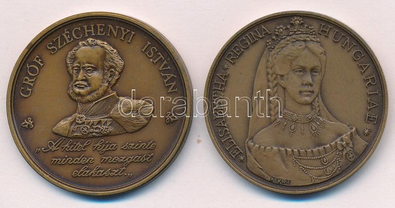 Kelemen Kristóf (1922-2001) 1987. "MÉE / Erzsébet királyné születésének emlékére" Br emlékérem (42,5mm) + DN "Gróf Széchenyi István / MHB Magyar Hitelbank Rt" Br emlékérem (42,5mm) T:2