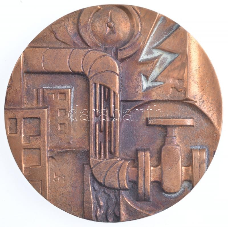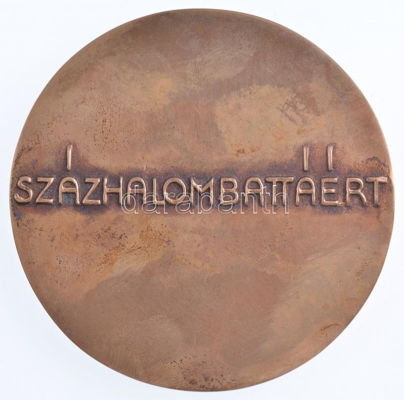 Lajos József (1936-) ~1965. "Százhalombattáért" kétoldalas, öntött bronz emlékérem, eredeti tokban (89mm) T:1- patina
