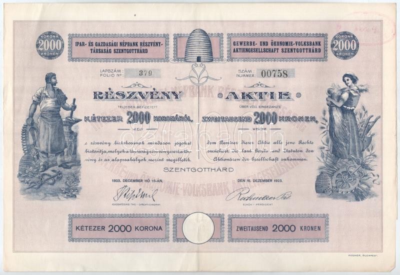 https://www.darabanth.com/en/409-Online-auction/409.0/Numismatics/Shares-and-Tickets~2500005/Szentgotthard-1923-Ipar-es-Gazdasagi-Nepbank-Reszvenytarsasag-Szentgotthard-reszvenye~II2525328
