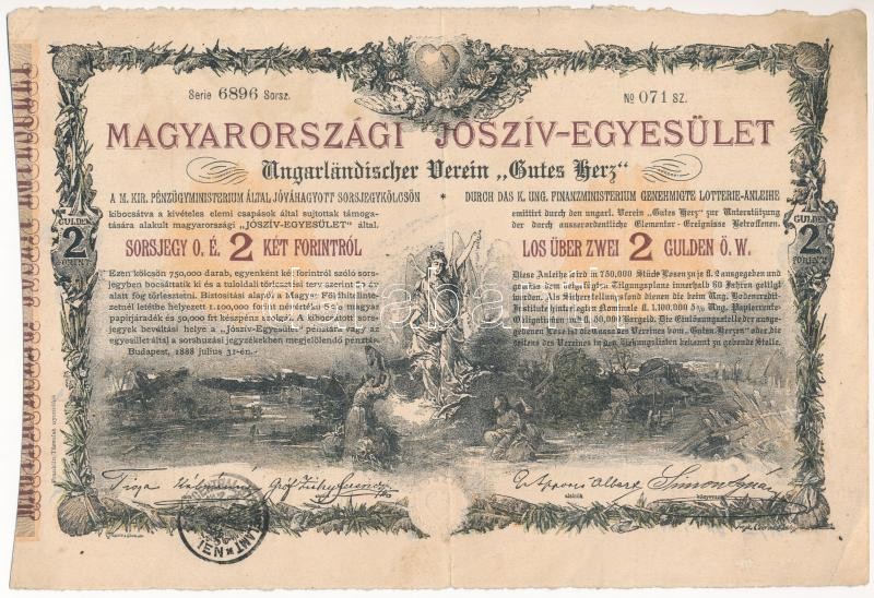 Vegyes: Budapest 1888. "Magyarországi Jószív-Egyesület" sors...