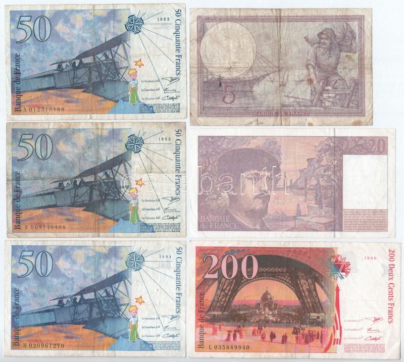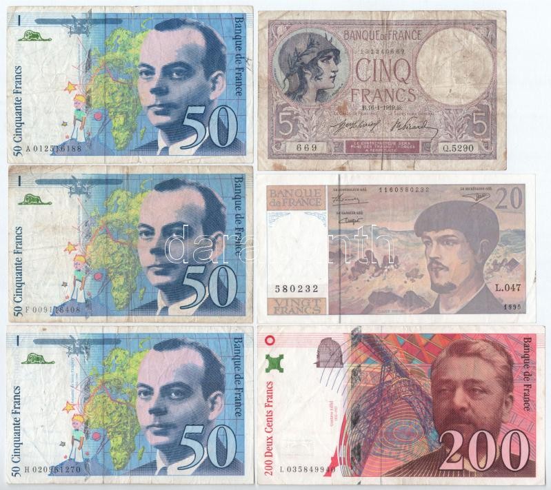 Franciaország 1919. 5Fr + 1993-1994. 50Fr (3db) + 1995. 20Fr + 1996. 200Fr T:III,III-