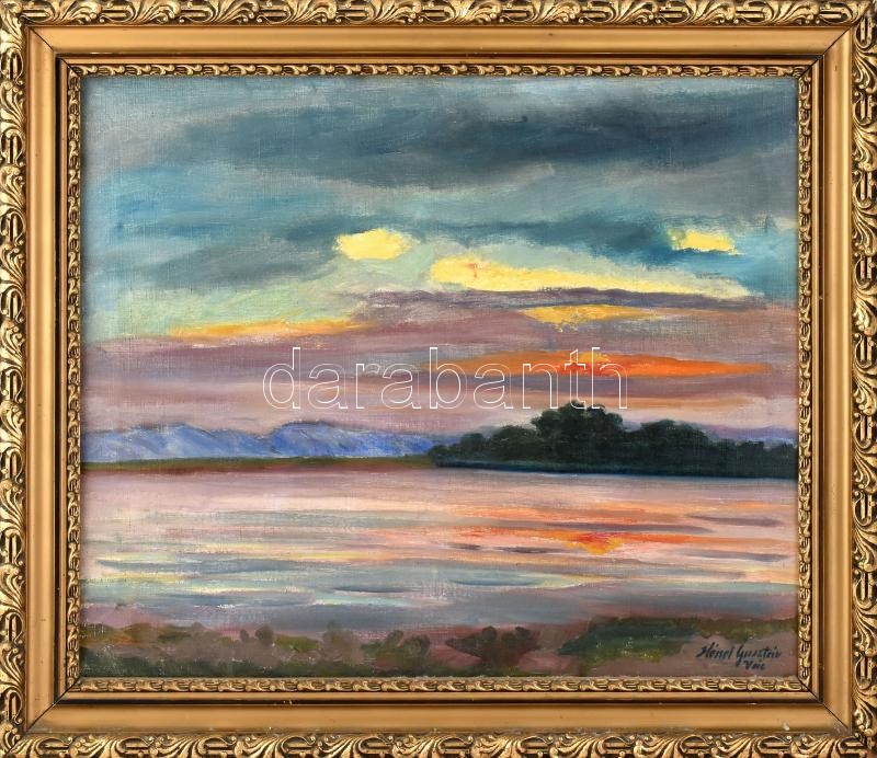 Hénel Gusztáv (1887-1966): Vízparti naplemente. Olaj, vászon, jelzett....