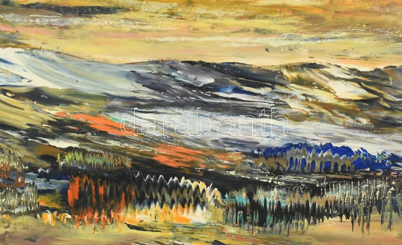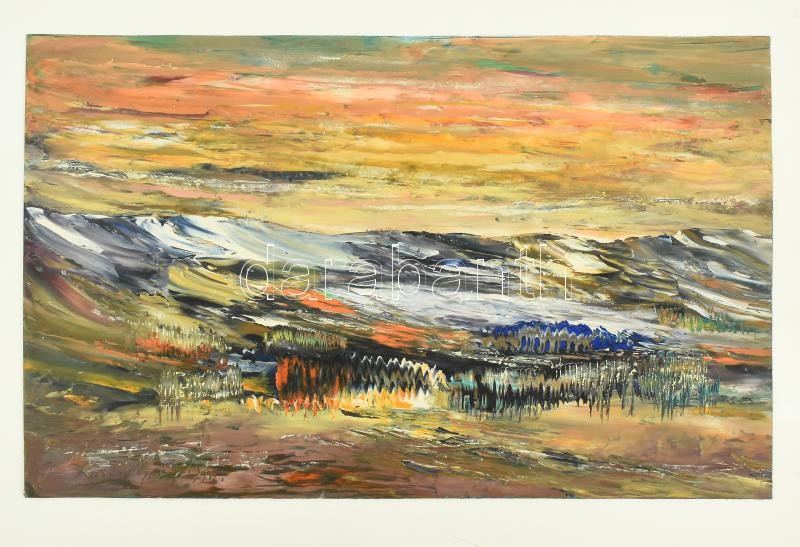 Körtvélyessy Magda (1919-2007): Táj. Olaj, karton, jelzett, kartonra kasírozva, hátoldalán autográf ajándékozási sorokkal 1976-ból. 24x38,5 cm. Soós Imre (1921-2013) műgyűjtő, művészeti író, a Kisgrafika folyóirat szerkesztője, a Magyar Nemzeti Galéria Baráti Köre alelnökének hagyatékából.