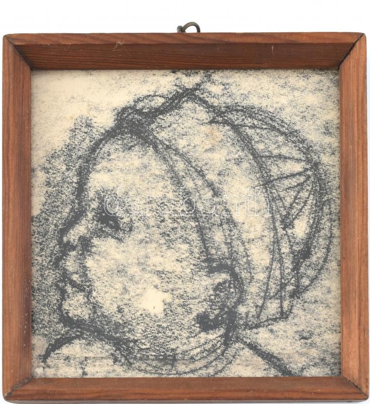 Kreitz Károly (1935k.-?): Sapkás kisgyerek portréja. Kréta, papír, jelzés nélkül. Üvegezett fa keretben, 15×15 cm