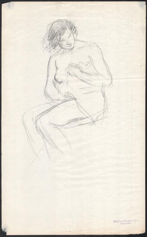 Description: Mattyasovszky-Zsolnay László (1885-1935), kétoldalas mű: Álló női hátakt, ülő női akt. Ceruza, papír,. egyik oldalon jelzett. Mindkét oldalon hagyatéki pecséttel. 34x21 cm