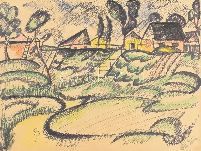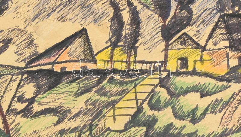Pál István (1888-1939): Expresszív táj. Akvarell, tus, karton, jelzett...