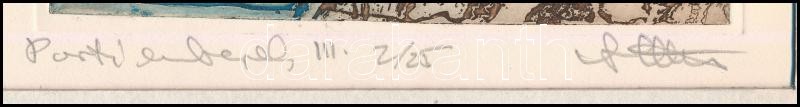 Description: Stettner Béla (1928-1984): Parti emberek III. Színes rézkarc, papír, jelzett, paszpartuban 12x15 cm. Soós Imre (1921-2013) műgyűjtő, művészeti író, a Kisgrafika folyóirat szerkesztője, a Magyar Nemzeti Galéria Baráti Köre alelnökének hagyatékából.