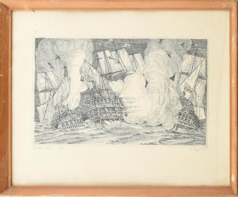 Varga Gyula (1935-2002): Tengeri csata. 1977 Rézkarc, papír. 50/25. Je...