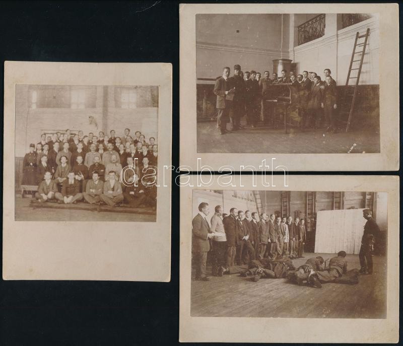 1912 A szamosújvári főgimnázium lövésztanfolyamáról, 3 db kartonra ragasztott fotó, hátoldalon feliratozva, 7,5×11,5 cm